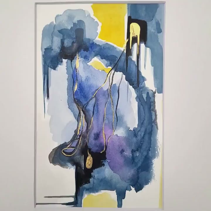 Original Watercolor Abstract Painting On Paper, Golden Lines Series, #GL-123-85